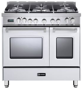 Verona Prestige series 36 inch dual fuel range with 5 sealed burners that goes up to 17000 BTU. The range delivers dual ovens of total capacity of 3.9 cu. ft. space to cook and bake. The ranges comes with a storage compartment where you can store low flat pans or plates to save space in the kitchen.Read More